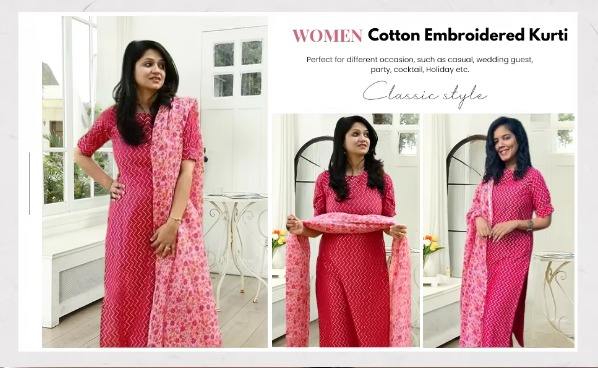 ชุดเอธนิคสำหรับผู้หญิง สวมใส่ได้ทุกวัน มีสินค้าพร้อมส่งทั่วประเทศ ชุดคุรตะผ้าคอตตอนผสมพิมพ์ลายทั้งตัว สำหรับขายส่ง เหมาะสำหรับการขายที่มีการค้าขายสูง