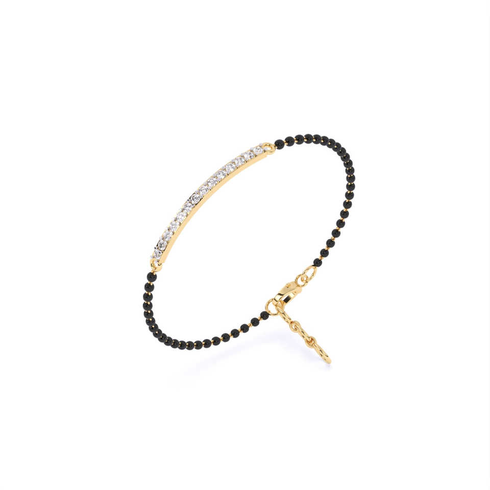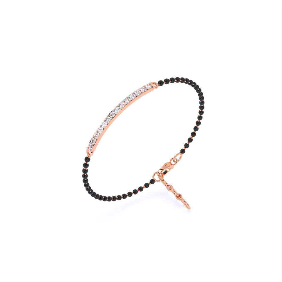 กำไลข้อมือแบบมังกัลสุตรประดับเพชรทรงกลมเพาะเลี้ยงสำหรับสวมใส่ทุกวัน น้ำหนัก 0.41 กะรัต ทำจากทอง 9K สีเหลือง ขาว และโรสโกลด์