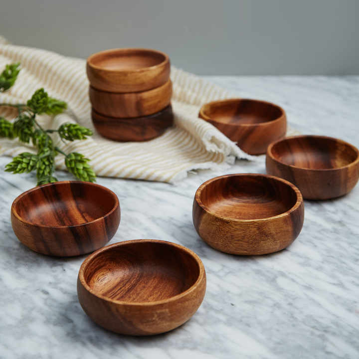 ชุดชามอาหารชามไม้ธรรมชาติทำด้วยมือชามอาหารเย็นเป็นมิตรต่อสิ่งแวดล้อม
