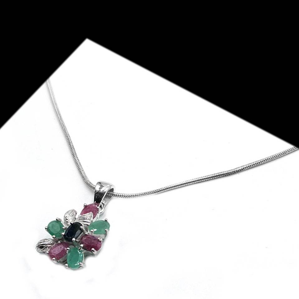สร้อยคอหินหลายเม็ดสีเงินสเตอร์ลิง925สวยงามทันสมัยสำหรับคนเกิดในงานแต่งงานหรือของขวัญครบรอบ