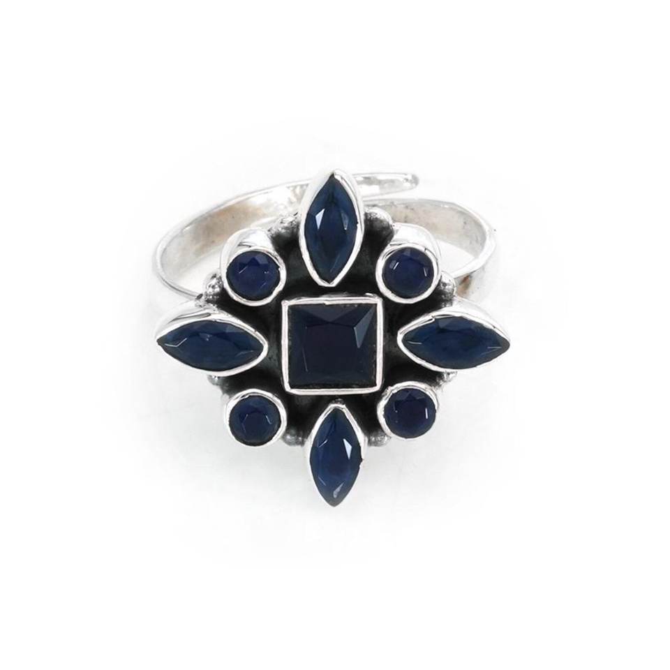 Dainty 925 Sterling Silver Ring with Blue Sapphire Multi-Stone Minimalist Wedding or Anniversary Gift for Her R0341-GS
