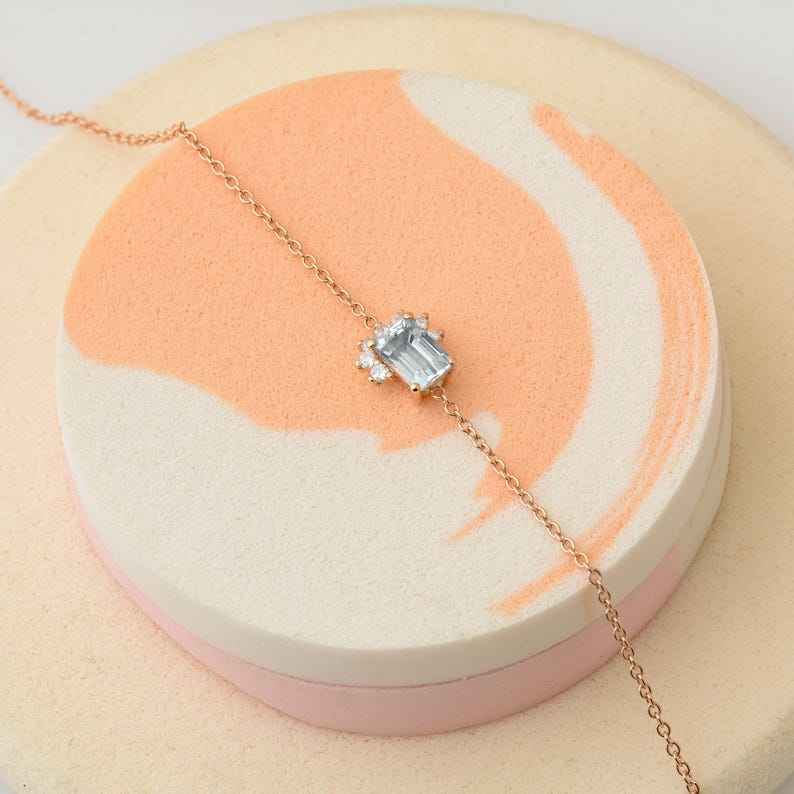 สร้อยข้อมืออะความารีนทรงอีมเมอรัลด์คัท แท้ รับรองคุณภาพ เงินแท้ 925 ชุบทองคำขาว 14K ของขวัญ