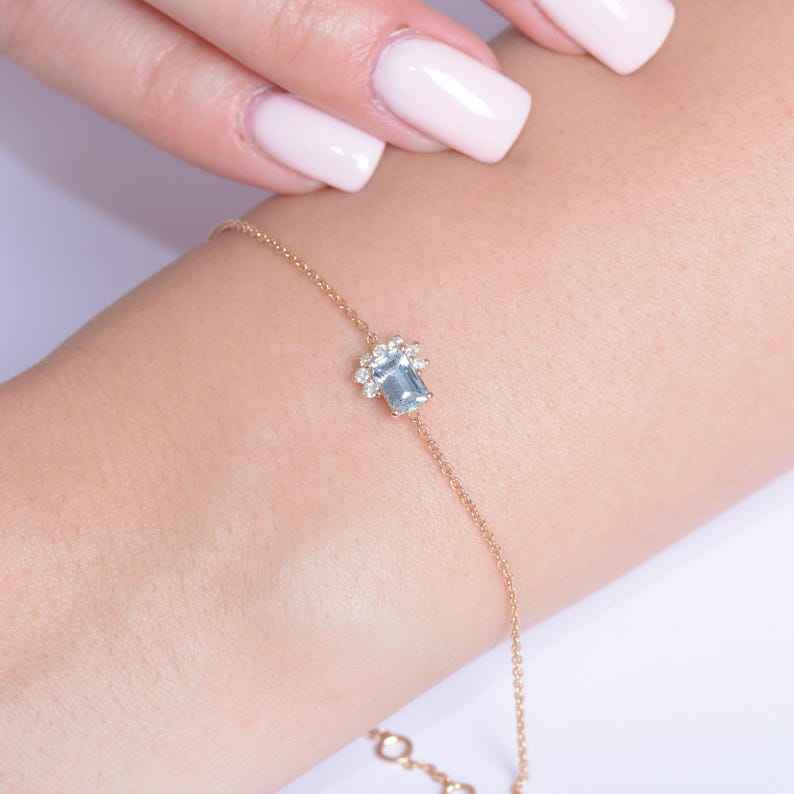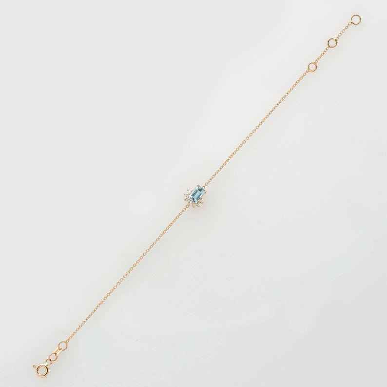 สร้อยข้อมือหรูหราดีไซน์ Aquamarine ประดับด้วยพลอย Aquamarine