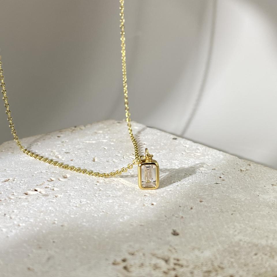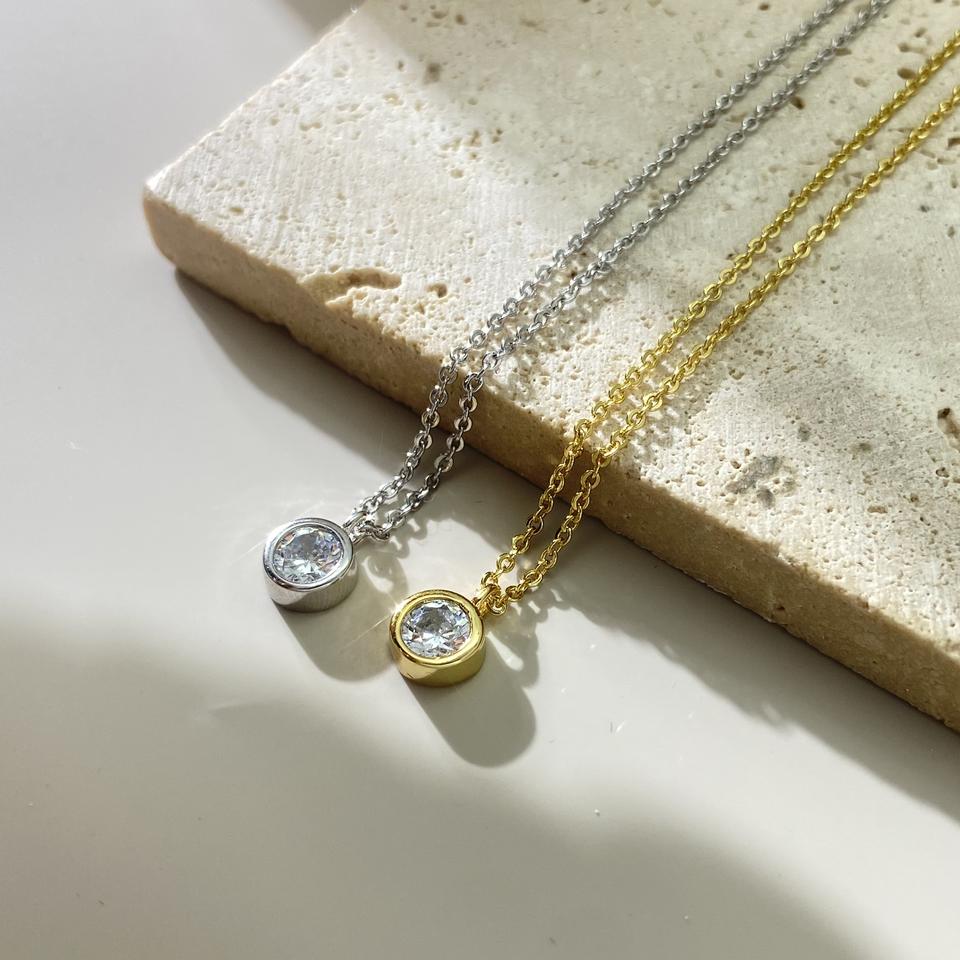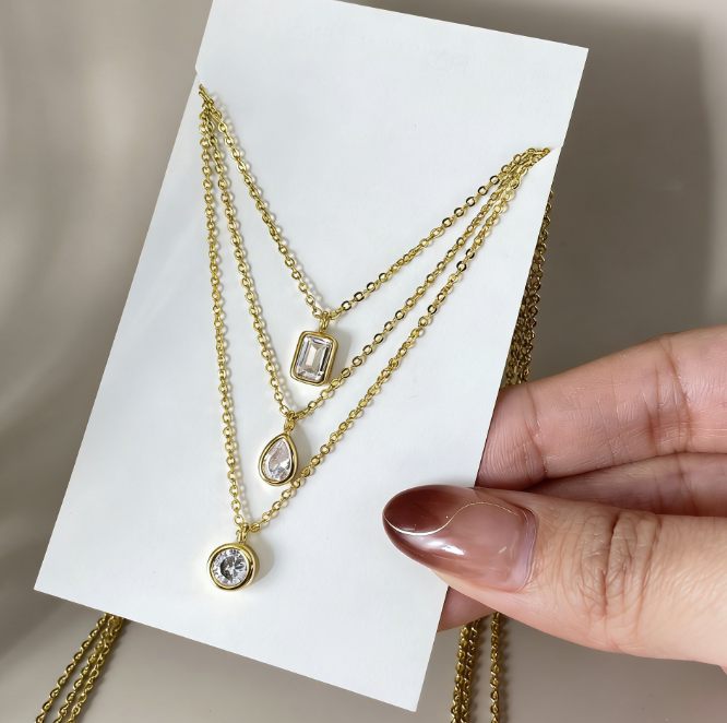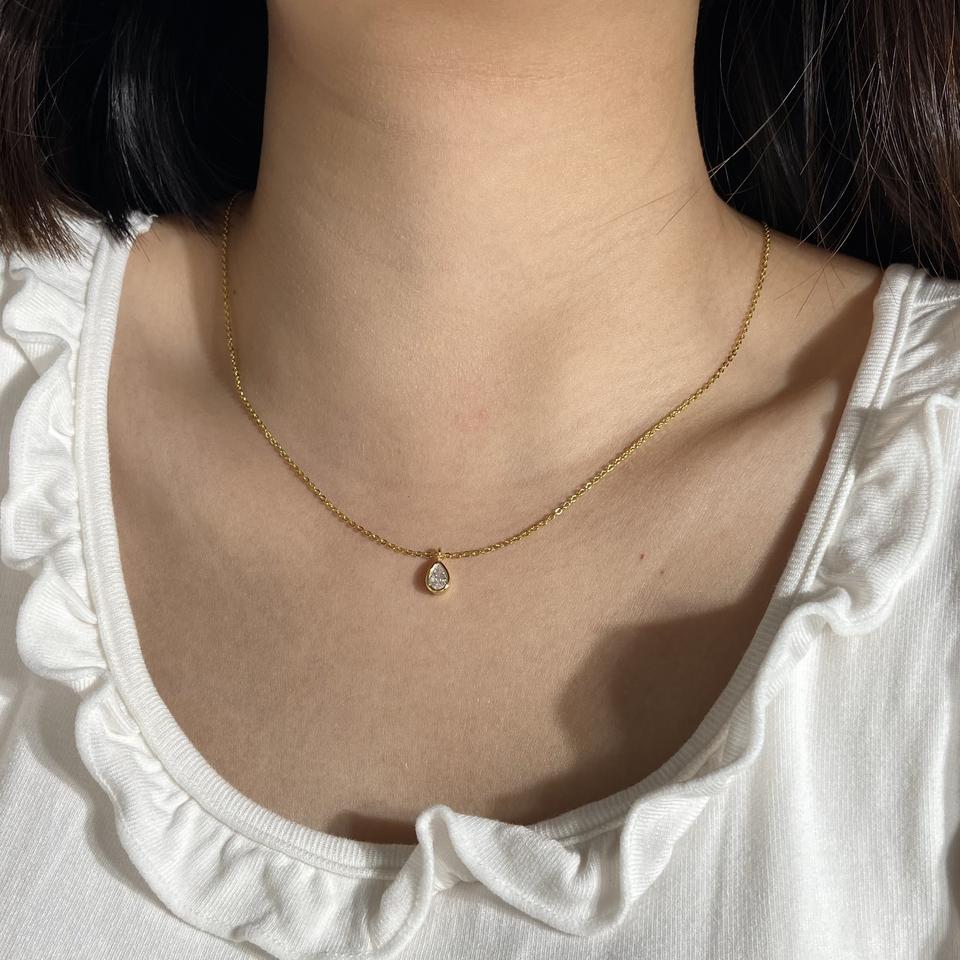 จี้เพชร CZ ทรงสวยหรู 3 รูปทรง กลม หยดน้ำ และเหลี่ยม ชุบทอง 18K เครื่องประดับมินิมอลสุดประณีต