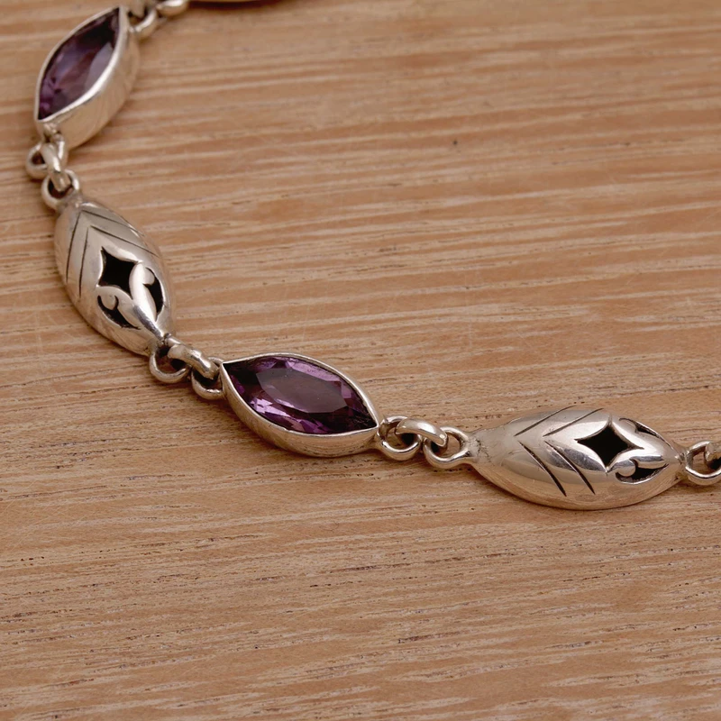 ประณีตโบฮีเมียนทำมืออเมทิสต์สเตอร์ลิงเงินสร้อยข้อมือโซ่แฟชั่นสำหรับผู้หญิงขายส่งเครื่องประดับราคาจำนวนมาก