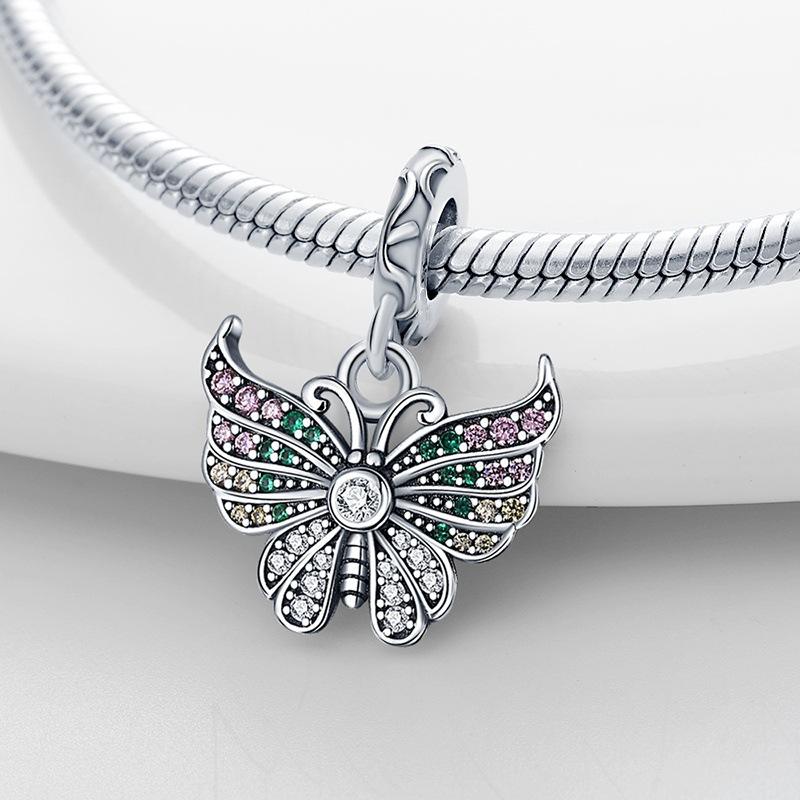 Dainty Colorful Butterfly CZ Enamel Charm Beads Brass Copper Silver Plated Children's Fit European Bracelet Fashion Jewelry