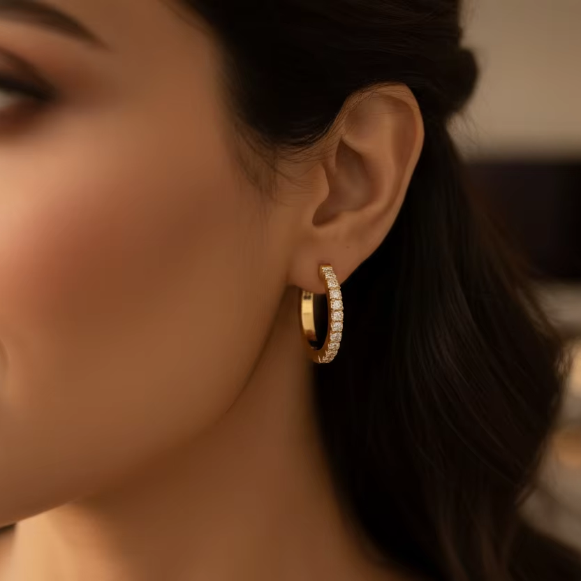 ต่างหูแบบห่วงชุบทอง 14k ประดับเพชรธรรมชาติทรงกลมเจียระไนบริลเลียนท์ 24 เม็ด ดีไซน์สวยหรูสำหรับผู้หญิง