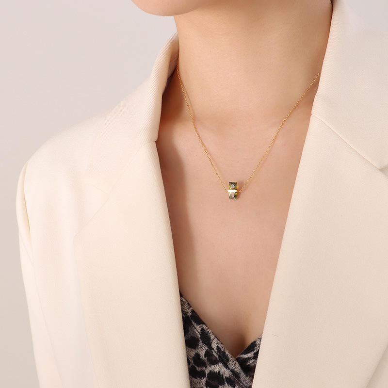 จี้คริสตัลสีเขียวทรงสี่เหลี่ยมจัตุรัส ดีไซน์เรียบหรู สแตนเลสขัดเงา สไตล์ฮิปฮอป ยูนิเซ็กส์ วินเทจ ประดับพลอยมรกตคุณภาพพรีเมียม