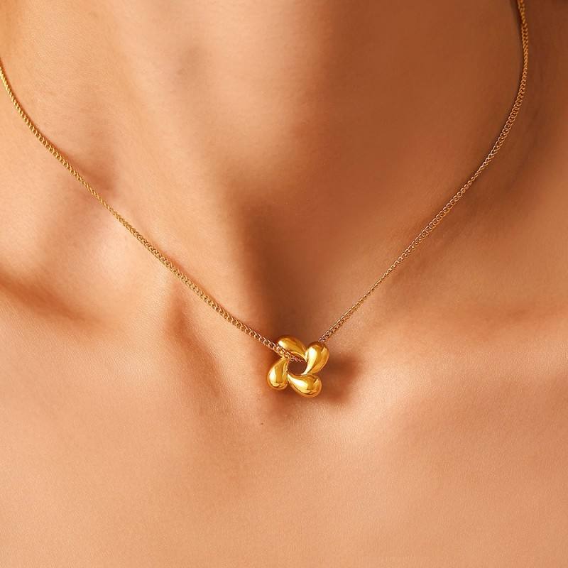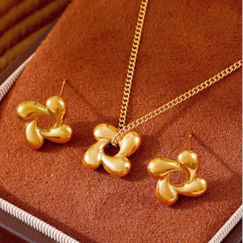 ชุดเครื่องประดับ Dainty สร้อยคอจี้ดอกไม้ PVD ชุบทองสแตนเลสต่างหูแบบกลวงกันน้ำสำหรับผู้หญิง
