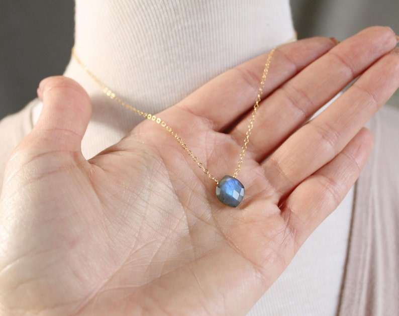 สร้อยคอลาบราดอไรต์ชุบทองวินเทจสุดหรูหรา - เครื่องประดับอัญมณีแบบมินิมอลสำหรับผู้หญิง - ของขวัญกันน้ำสำหรับเธอ