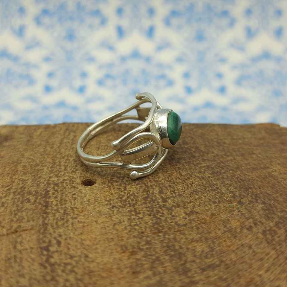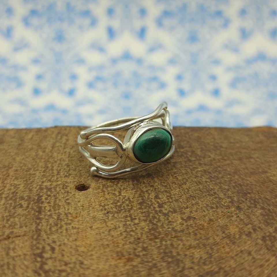 Dainty แหวนหมั้นเงิน925มาลาไคต์เพชรแท้เครื่องประดับโบฮีเมียนแบบเรียบง่ายงานฝีมือ IGI ได้รับการรับรองสำหรับ