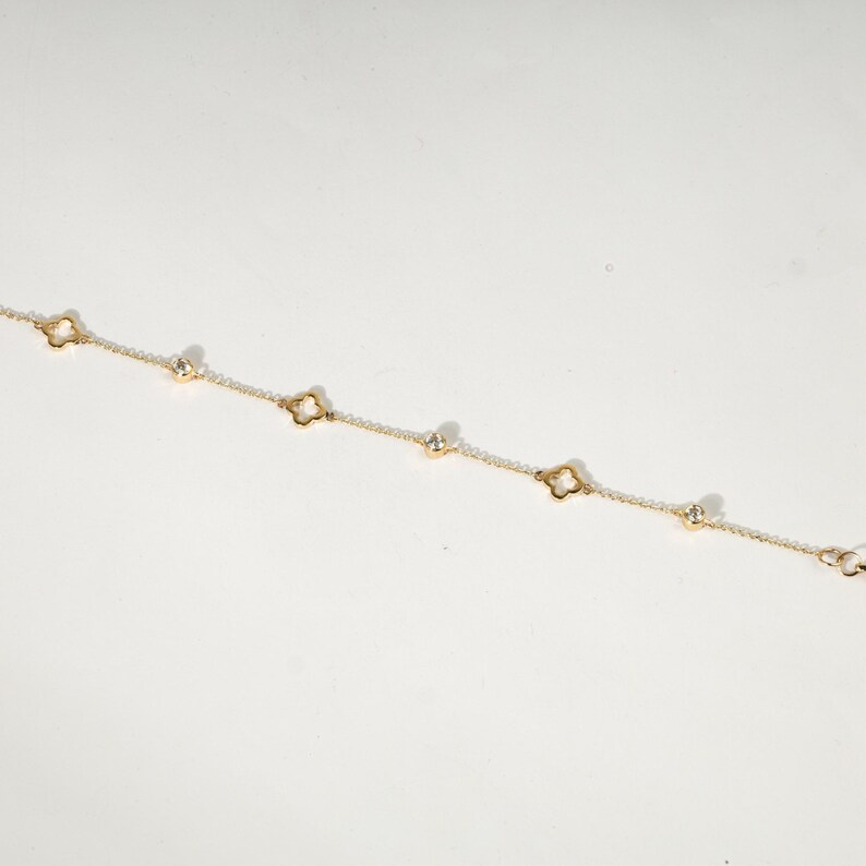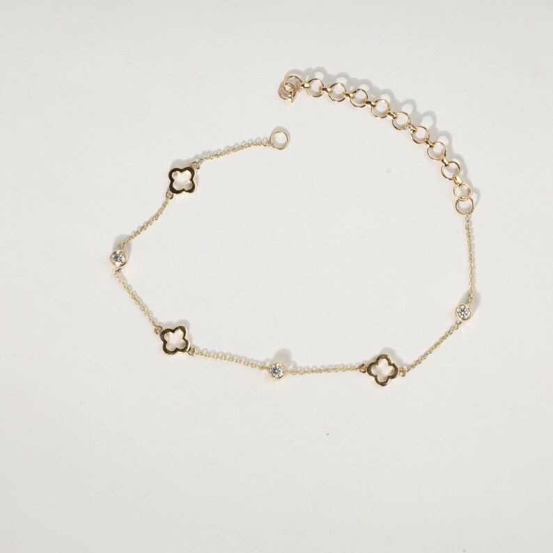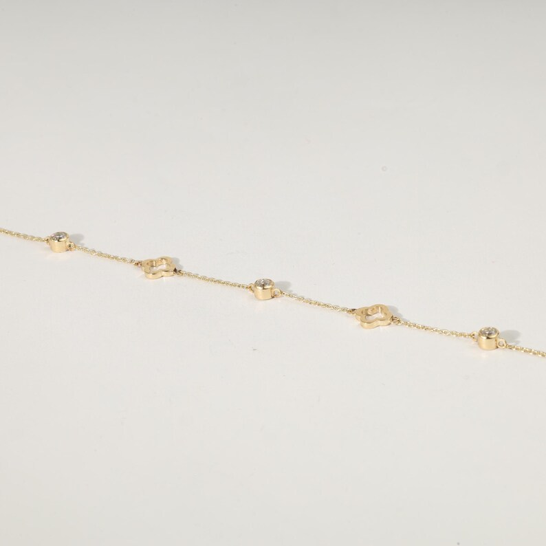 กำไลข้อมือรูปใบโคลเวอร์ประณีต ทองคำแท้ 14K ประดับเพชรธรรมชาติและเพชรเพาะเลี้ยง ของขวัญแทนมิตรภาพและวันครบรอบสำหรับผู้หญิง