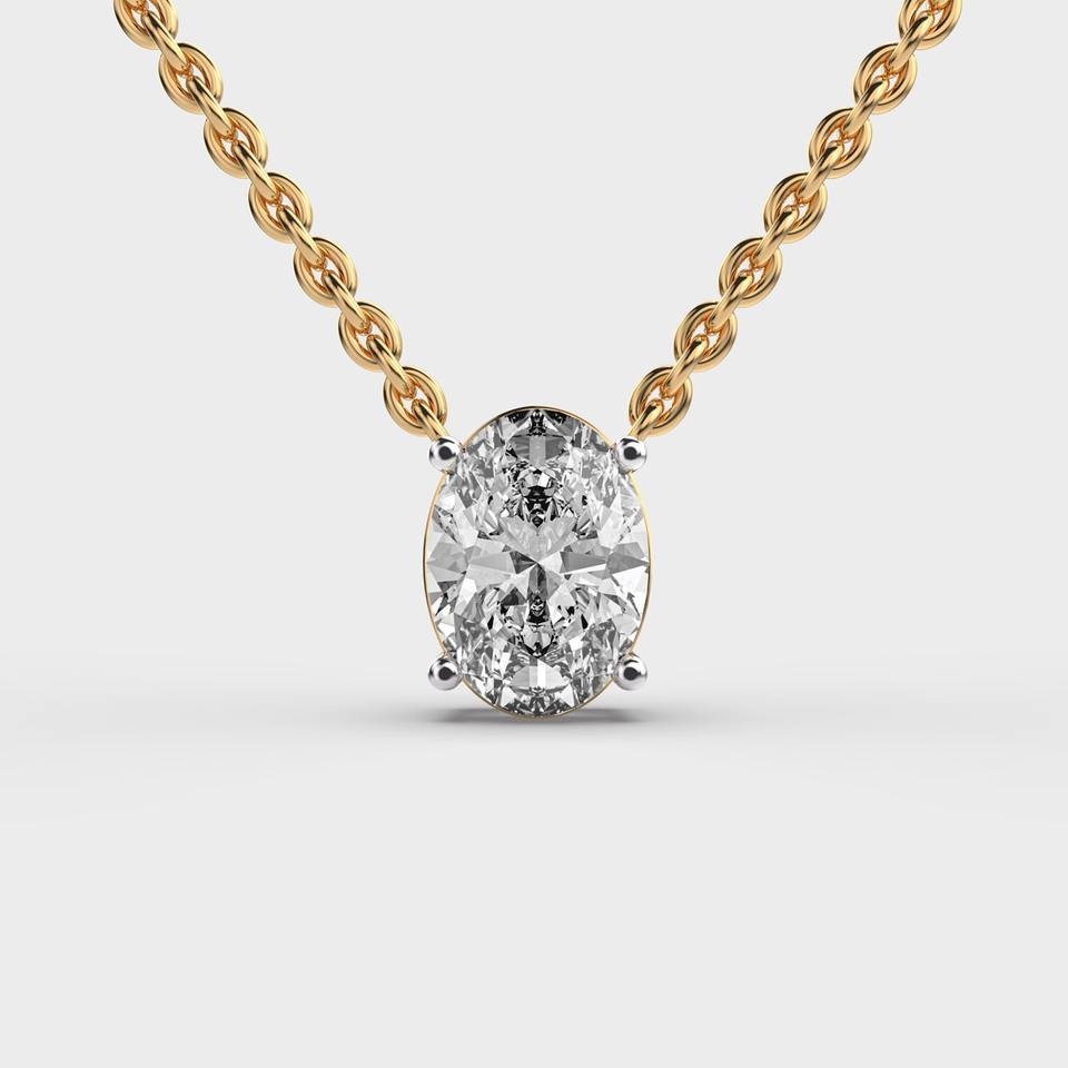 จี้เพชรทรงรีแบบโซลิแทร์ในทองคำ 18K สีเหลือง / สีขาว และสีโรสโกลด์