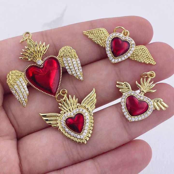 Dainty สีแดงหัวใจศักดิ์สิทธิ์โช้คเกอร์กับนางฟ้าทับทิมจี้หินเครื่องประดับทองเหลืองชุบทองสำหรับผู้หญิงสไตล์น่ารัก