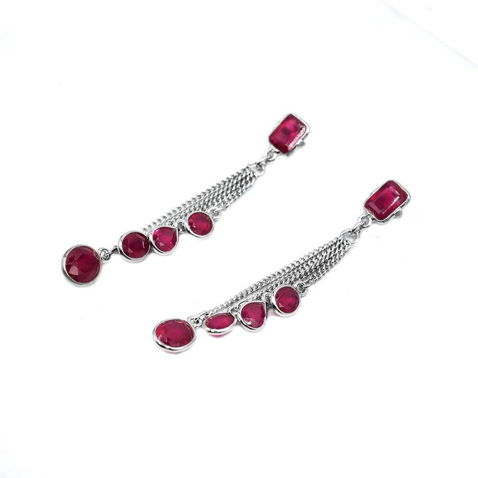 ต่างหูเม็ดกลมทับทิมสีโรสโกลด์แสนสวยพร้อมโซ่แบบยาวสไตล์มินิมอลลิสต์ของขวัญแต่งงานทับทิมธรรมชาติ