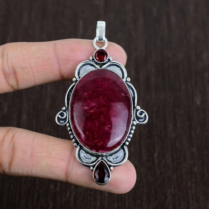 จี้พลอยทับทิมทรงสวยงาม เงินแท้ 925 สร้อยคอทำมือสไตล์ชนเผ่า เครื่องประดับหรูหรา ของขวัญสำหรับผู้หญิง