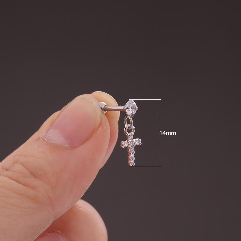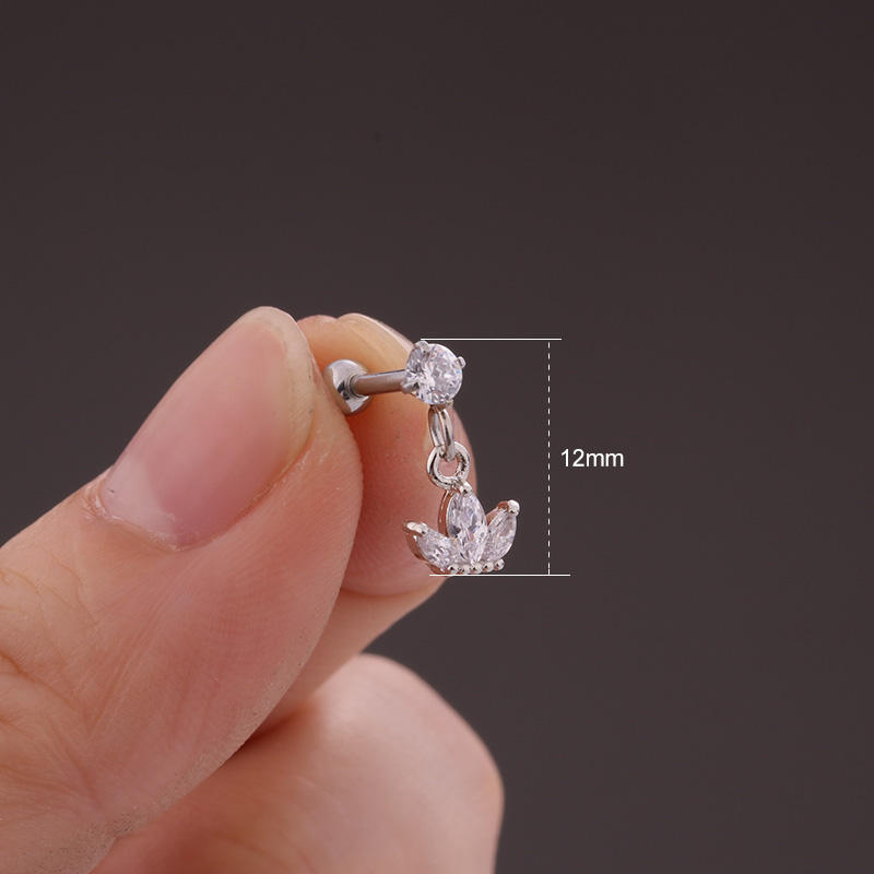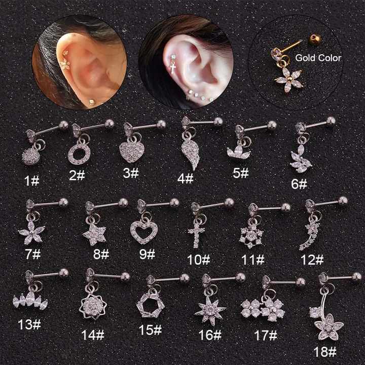 ต่างหูแบบห้อยรูปหัวใจประดับเพชร CZ ชุบเงิน ดีไซน์สวยหรู น้ำหนัก 20 กรัม ทำจากสแตนเลสสตีล เหมาะสำหรับงานแต่งงาน คลาสสิก ใส่ได้ทั้งชายและหญิง ใช้ได้กับรูหูแบบ Plug Tunnel Daith และ Forwarder Helix