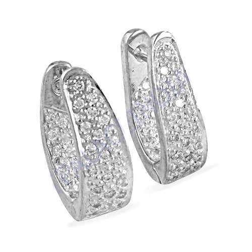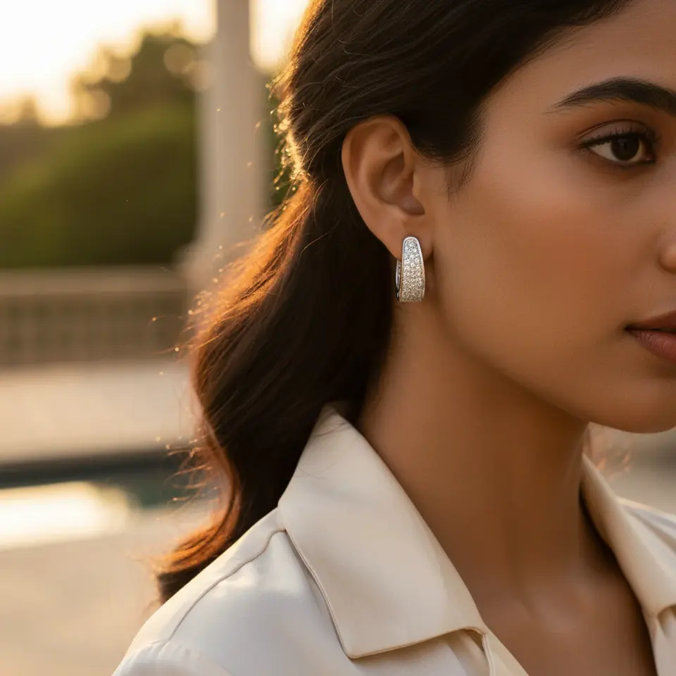 ต่างหูห่วงประดับคริสตัลเซอร์โคเนียทรงลูกบาศก์สีเงินสำหรับผู้หญิง