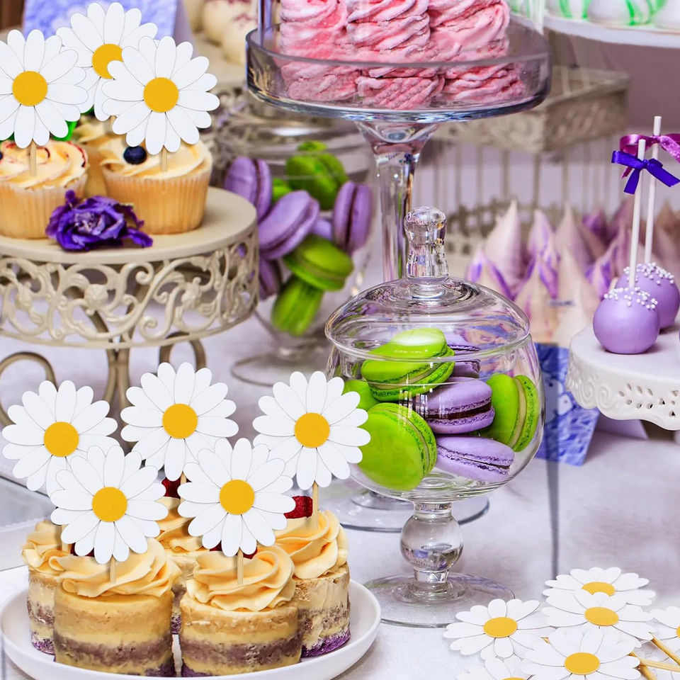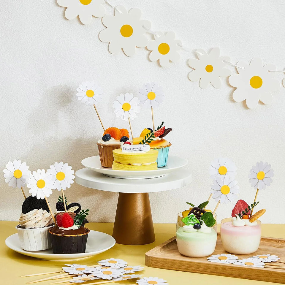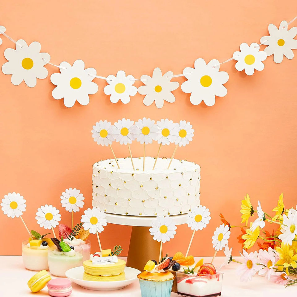 ของประดับตกแต่งหน้าเค้กรูปดอกเดซี่สำหรับงานเลี้ยงฉลองวันเกิดฤดูใบไม้ผลิฤดูร้อน