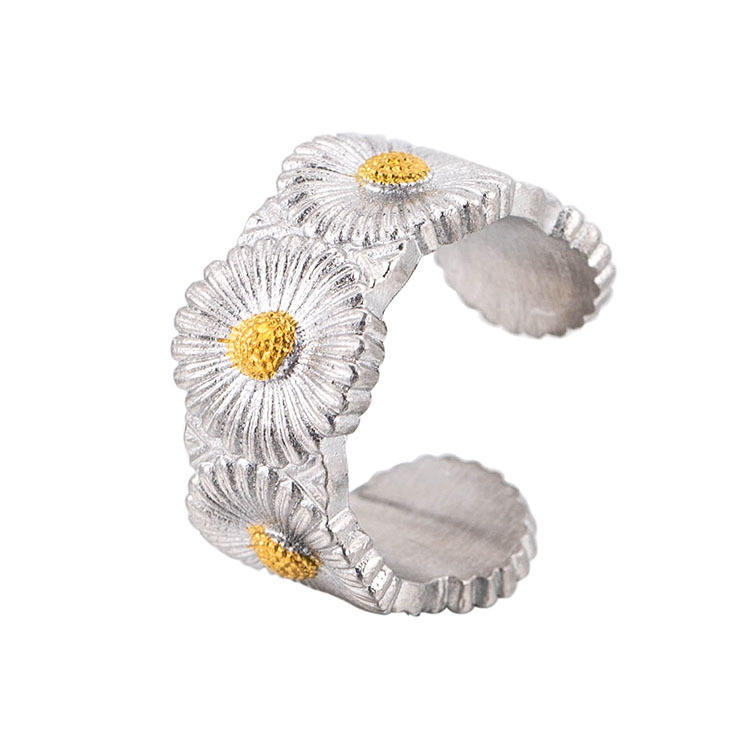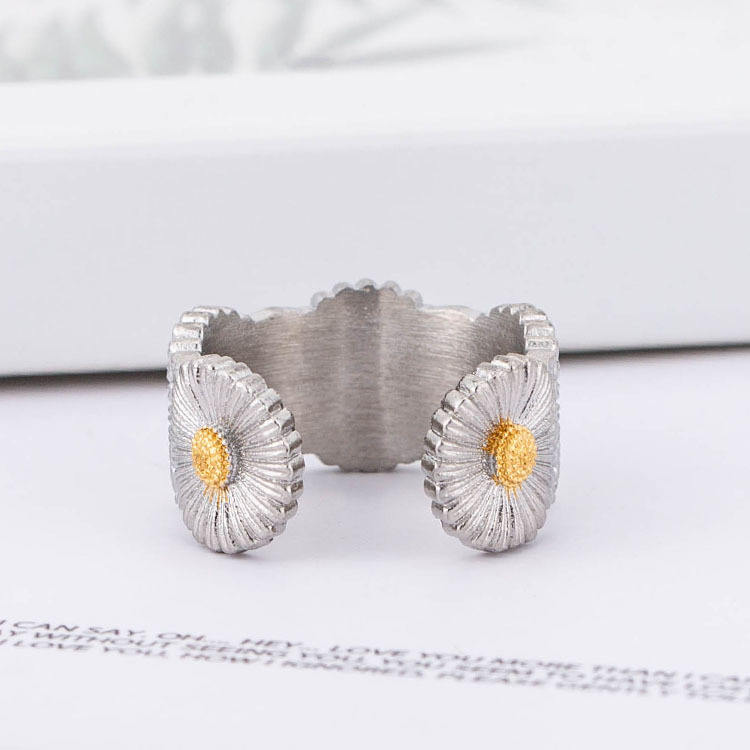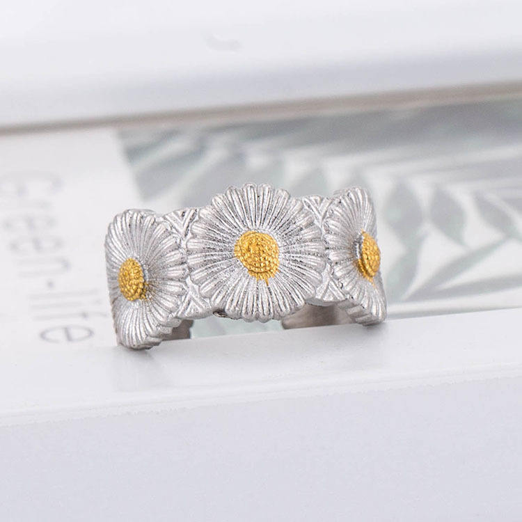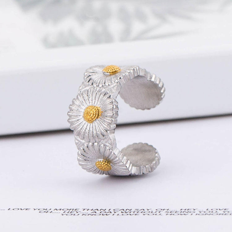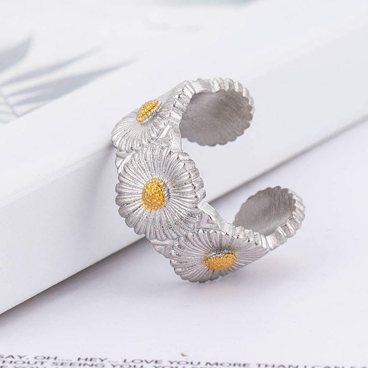 แหวนเดซี่สแตนเลสสตีล ดีไซน์ดอกไม้แบบเปิด ของขวัญเครื่องประดับสำหรับทุกเพศ