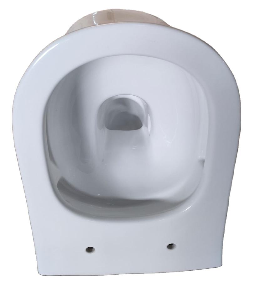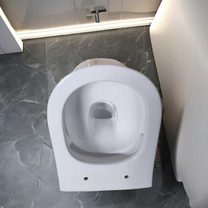 โถสุขภัณฑ์เซรามิกแบบชิ้นเดียว รุ่นเดซี่ไวท์ โมเดิร์น แบบกดสองปุ่ม ทรงยาว พร้อมระบบดักกลิ่นแบบ P-Trap ติดตั้งบนพื้น สำหรับวิลล่าและโรงแรม