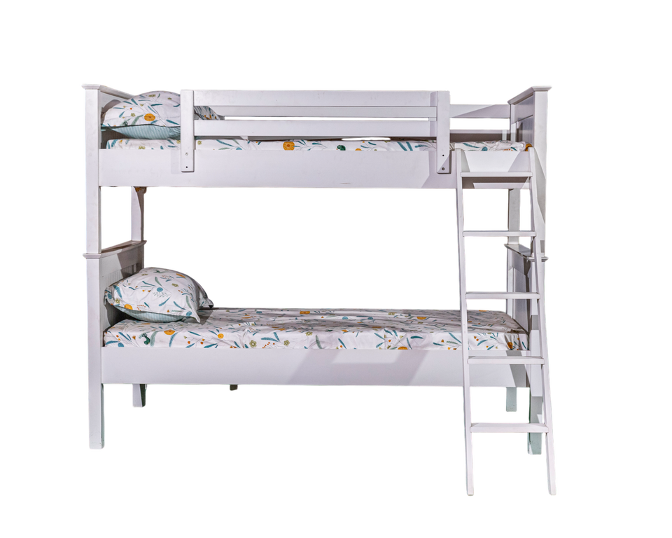 Dakota Modern Design Eco-Friendly Durable Comfortable Extendable Foldable Bunk Bed White Rubber Wood Solid Construction
