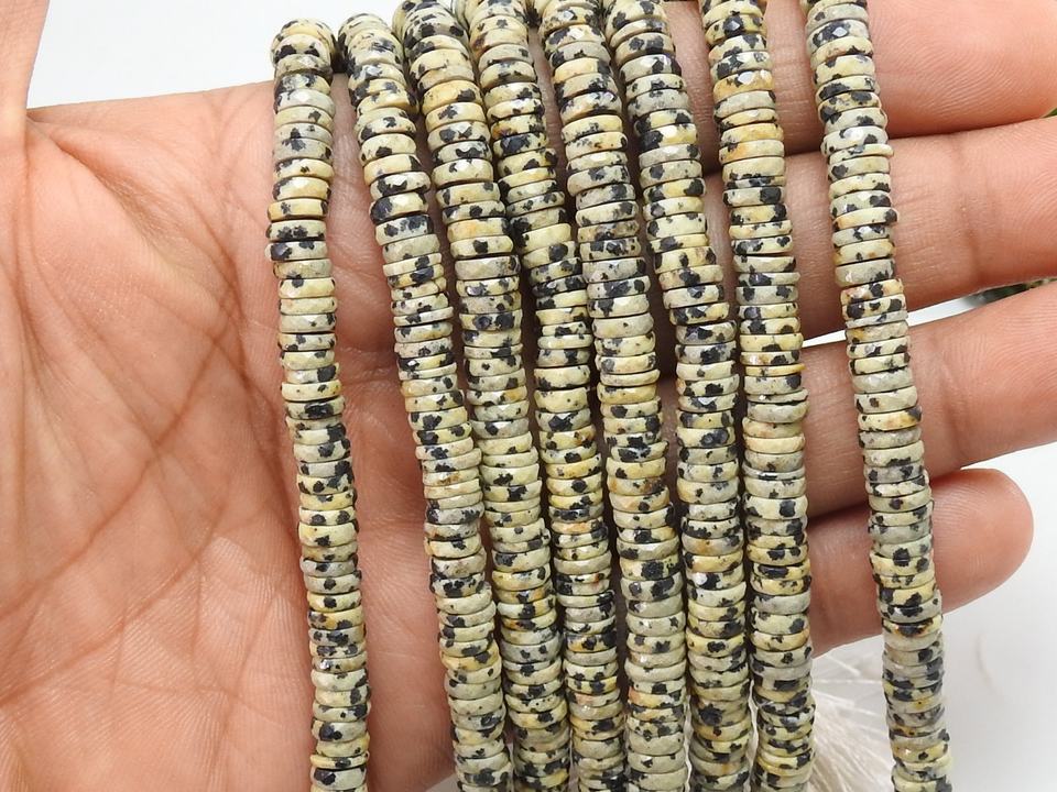 ลูกปัดยางรูปทรงเพชรลายดัลเมเชียน สีขาว/ดำ ขนาด 8 นิ้ว ความยาวประมาณ 6-7 มม. แบรนด์ PMEGEMSBEADS รับรองโดยบุคคลที่สาม สำหรับทำเครื่องประดับ