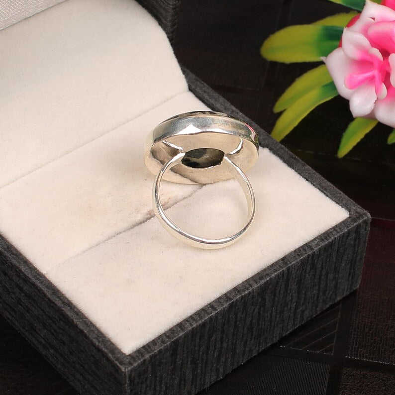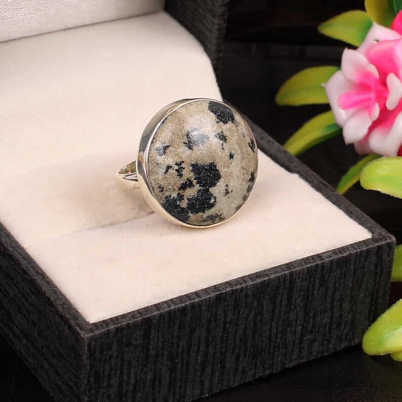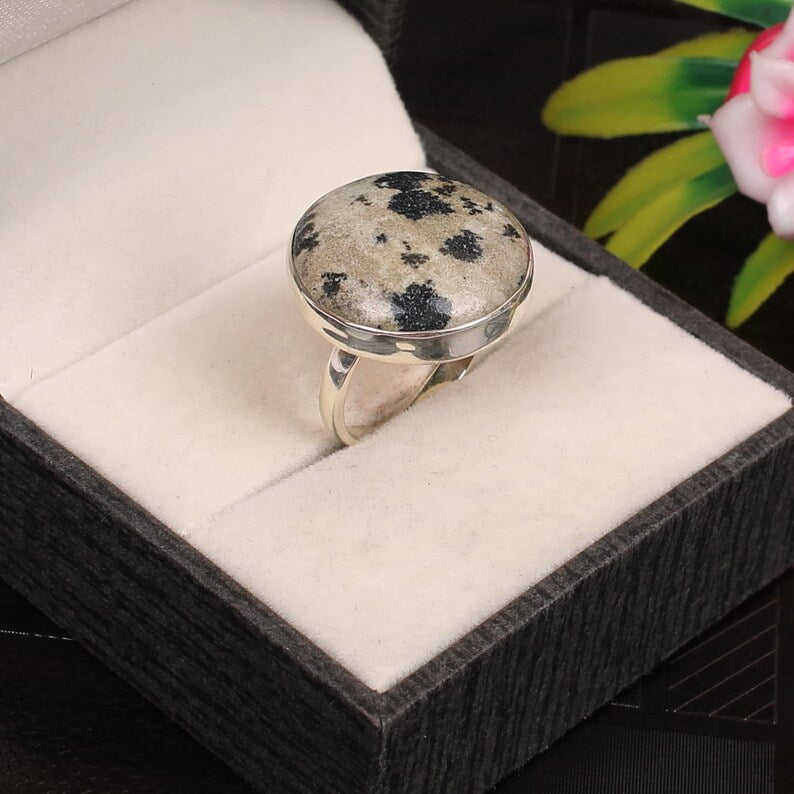 อัญมณีแจสเปอร์ดัลเมเชี่ยนแหวนเงินสเตอร์ลิง92.5อัญมณีหลวมหรูหรา