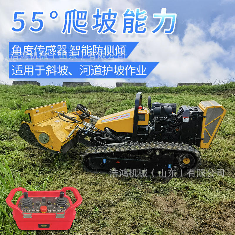 เครื่องตัดหญ้าแบบสายพานสำหรับงานบนตลิ่งเขื่อน ควบคุมระยะไกล ใช้ได้ทุกพื้นที่ ตัดหญ้าและบดเศษไม้ สำหรับงานบนตลิ่งแม่น้ำ