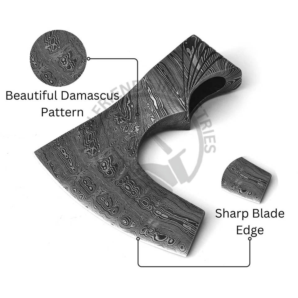 หัวขวานเหล็กดามัสกัสสำหรับการตั้งแคมป์กลางแจ้งแบบบุรุษป่า หัวขวานตีขึ้นรูปด้วยมือ ใบมีดแบบบุรุษป่า หัวขวานไวกิ้งเหล็กดามัสกัส