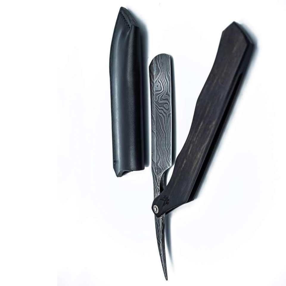 มีดโกนด้ามจับไม้ตรงใบมีดเหล็กดามัสกัส