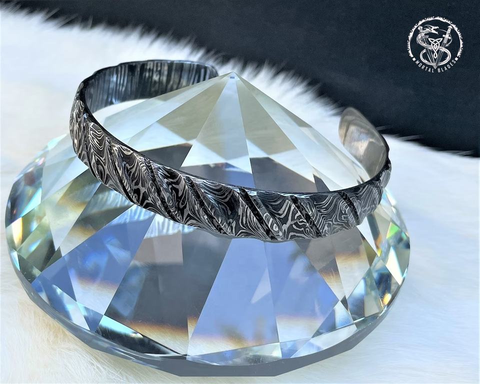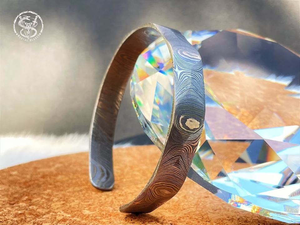 กำไลข้อมือเหล็กดามัสกัส กำไลข้อมือแบบเปิด ทำด้วยมือ กำไลแบบเปิด งานตีขึ้นรูปด้วยมือ เครื่องประดับสไตล์ไวกิ้ง กำไลทำมือ