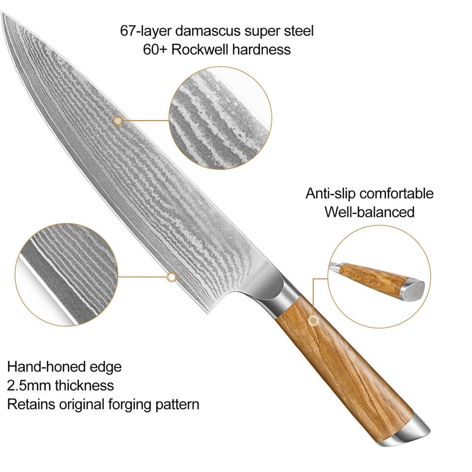 ชุดมีดเชฟเหล็กดามัสกัส ระดับมืออาชีพ เหมาะสำหรับเชฟ ร้านอาหาร และสตูดิโอทำอาหาร