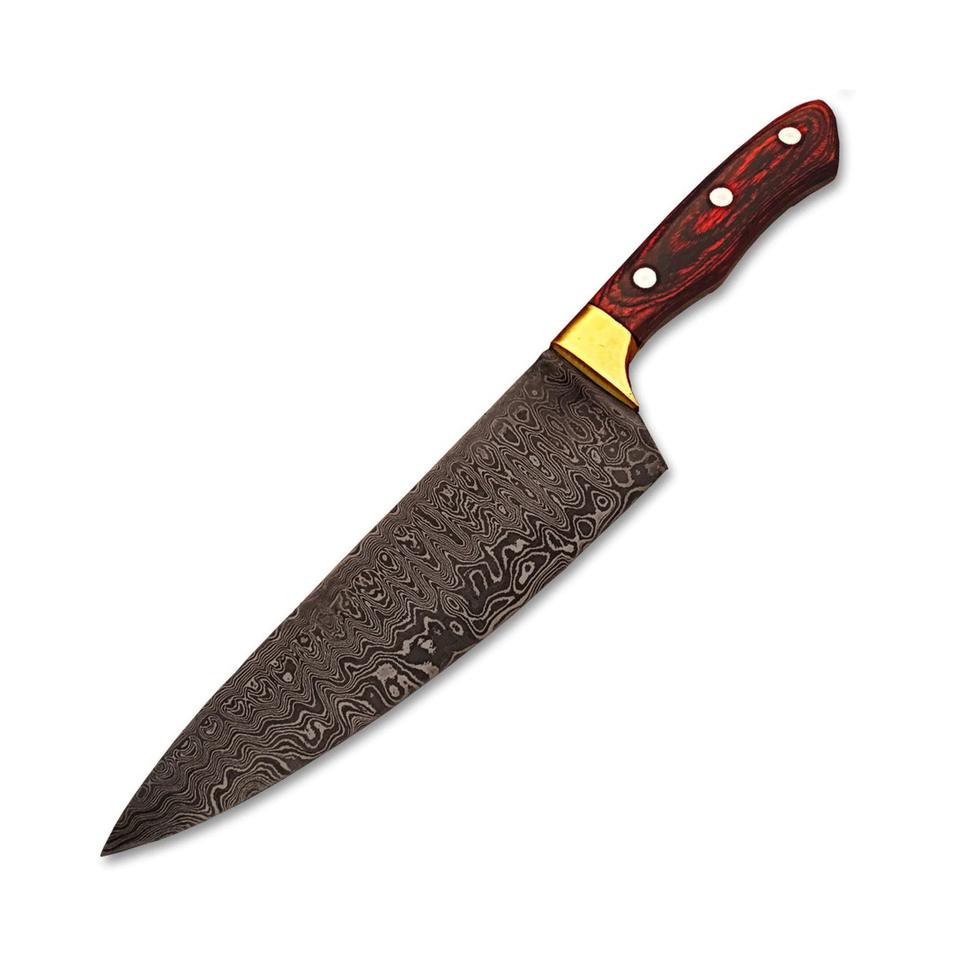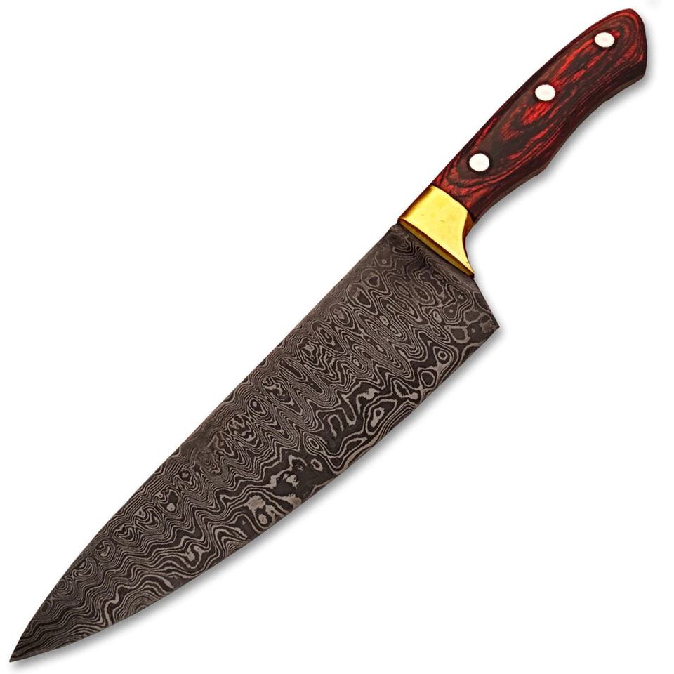มีดเชฟเหล็กดามัสกัสพร้อมด้ามไม้ pakka ใบมีดเหล็กกล้าคาร์บอนสำหรับเครื่องครัวเครื่องครัวเครื่องครัว
