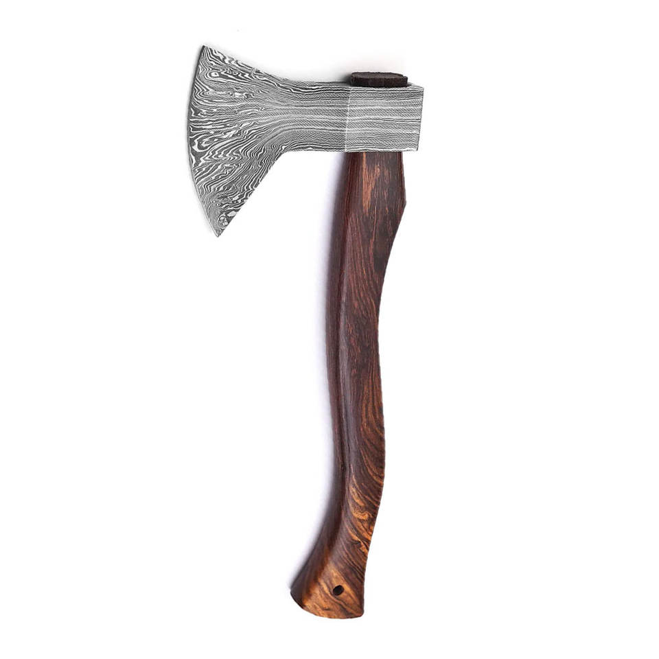 ขวานเหล็กดามัสกัสลายสั่งทำพิเศษ พร้อมด้ามไม้เนื้อแข็ง สำหรับตั้งแคมป์ บุชคราฟต์ ล่าสัตว์ และอุปกรณ์กลางแจ้ง