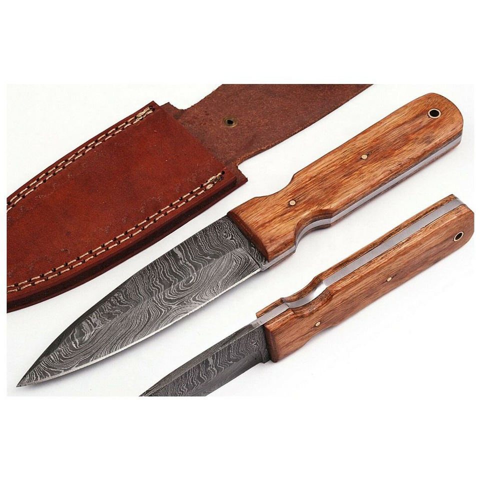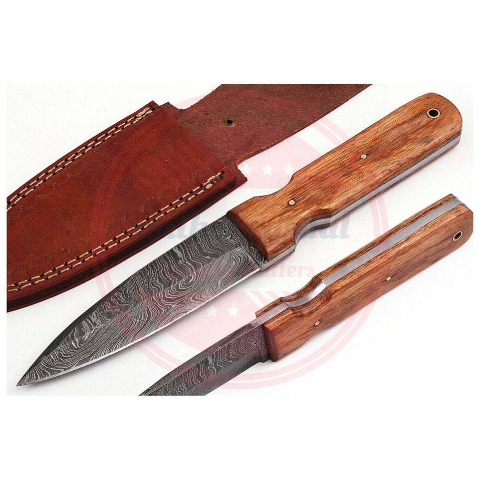 Damascus Steel Fixed Blade Hunting Camping Skinner Knife with Wooden Handle and Leather Case\Customized Knives
