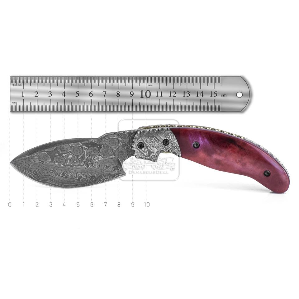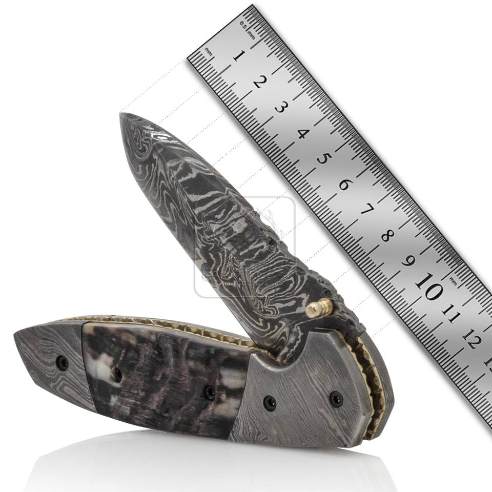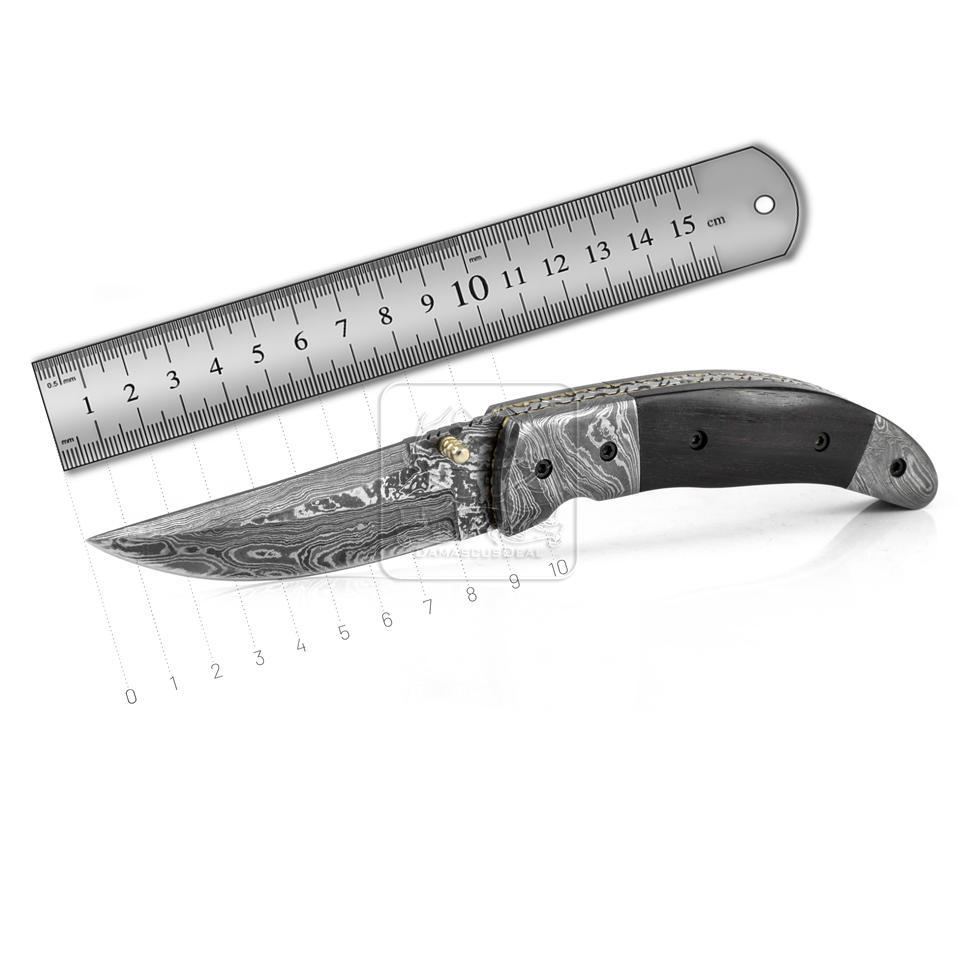 มีดพับได้แบบพกพาทำจากเหล็กดามัสกัสฮอร์น DD-FK-777สำหรับตั้งแคมป์ใช้งานกลางแจ้งแนวยุทธวิธีทำมือ D2หนัง