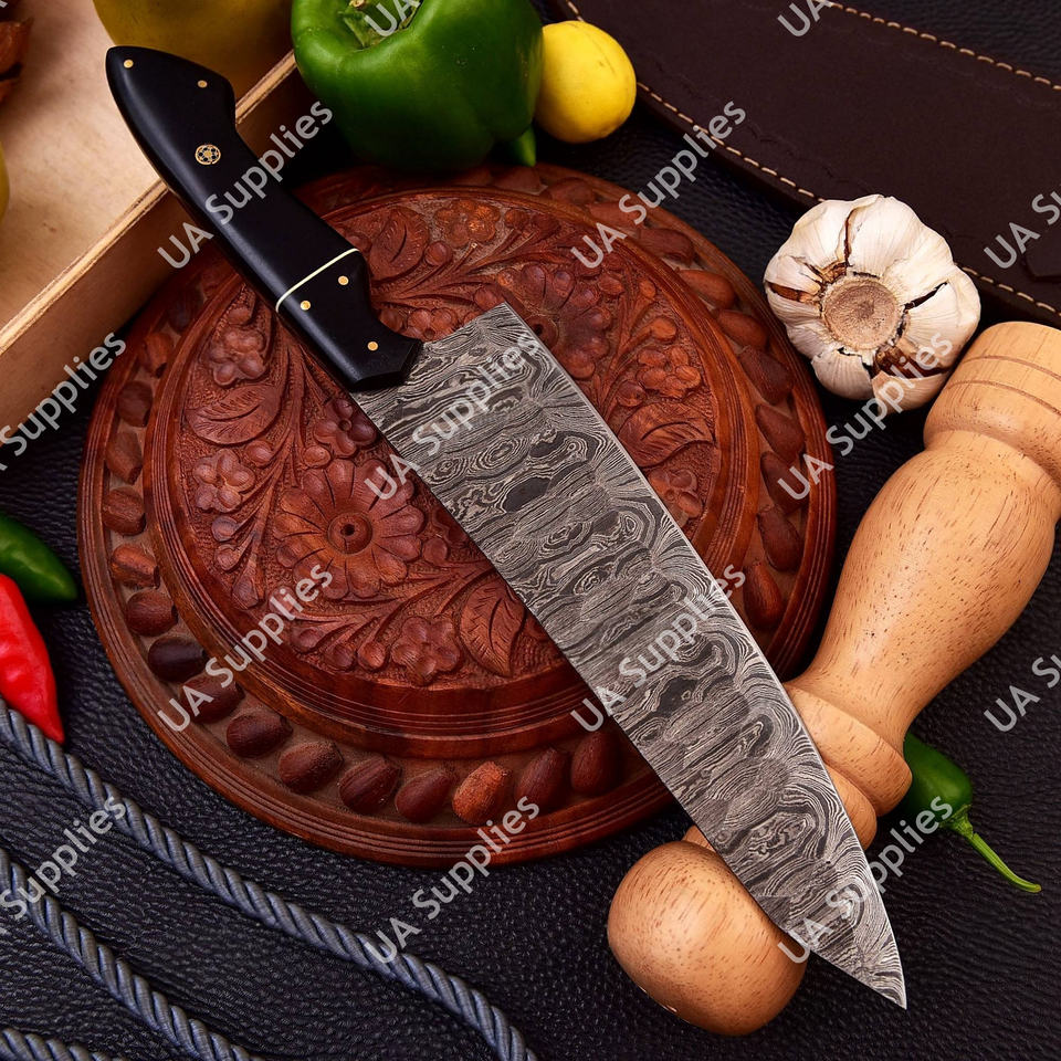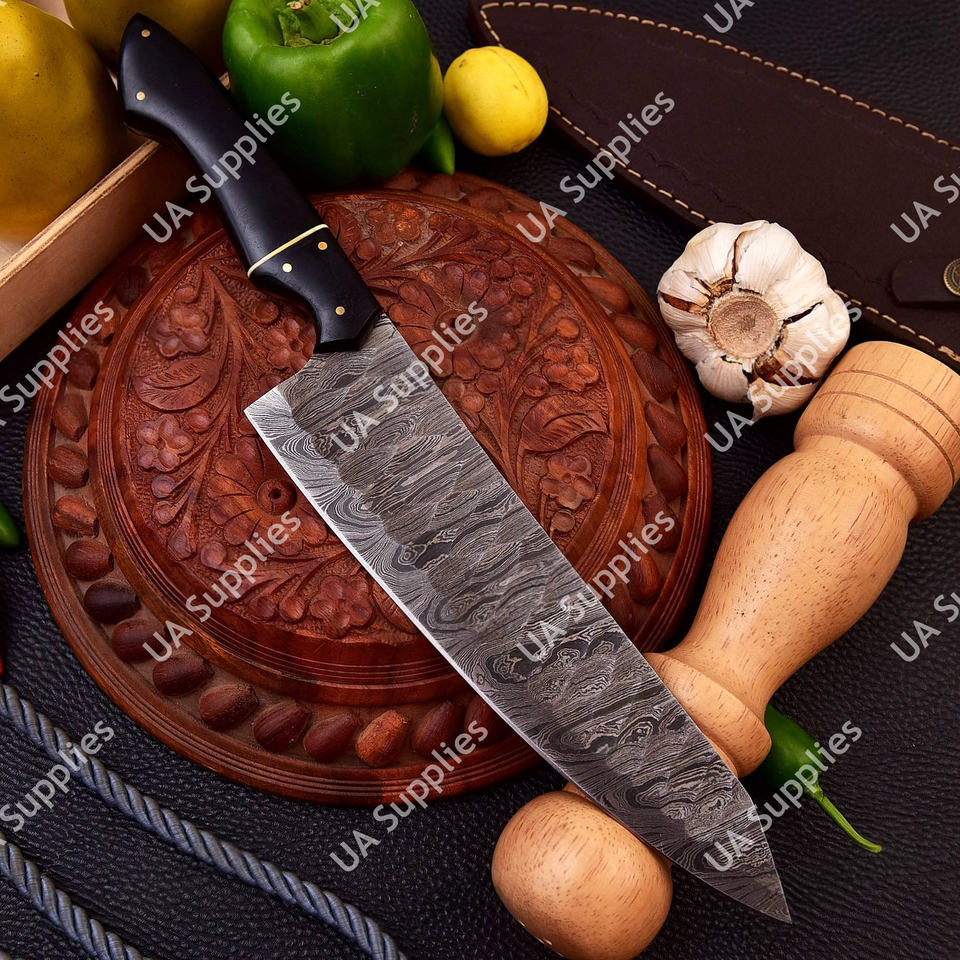 มีดครัวเหล็กดามัสกัส ด้ามจับอีพ็อกซี่สีดำ ขนาด 8 นิ้ว น้ำหนักเบา แข็งแรง ทนทาน ใช้งานได้ทั้งมือซ้ายและขวา ด้ามจับแบบฟูลแทง ผลิตด้วยมือ
