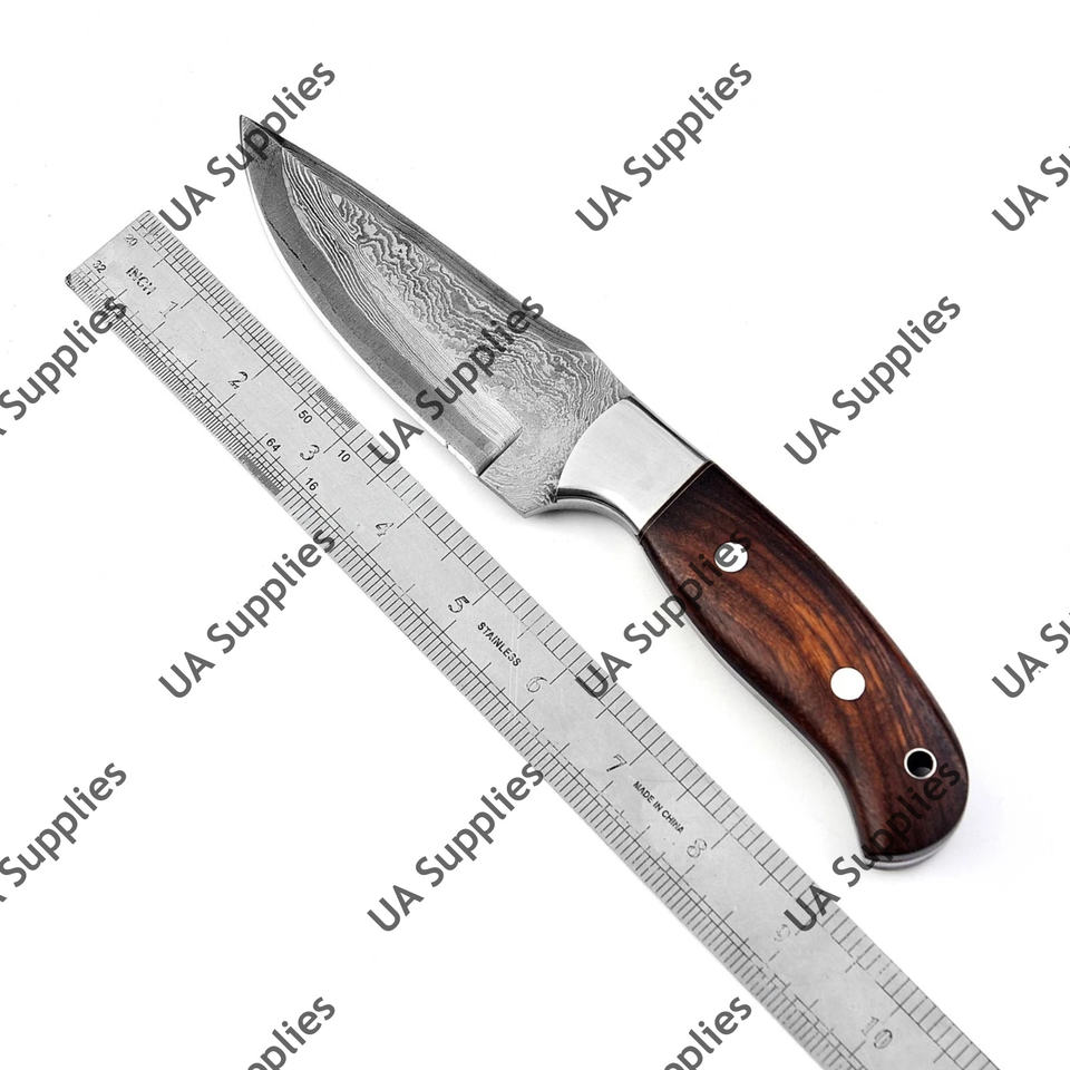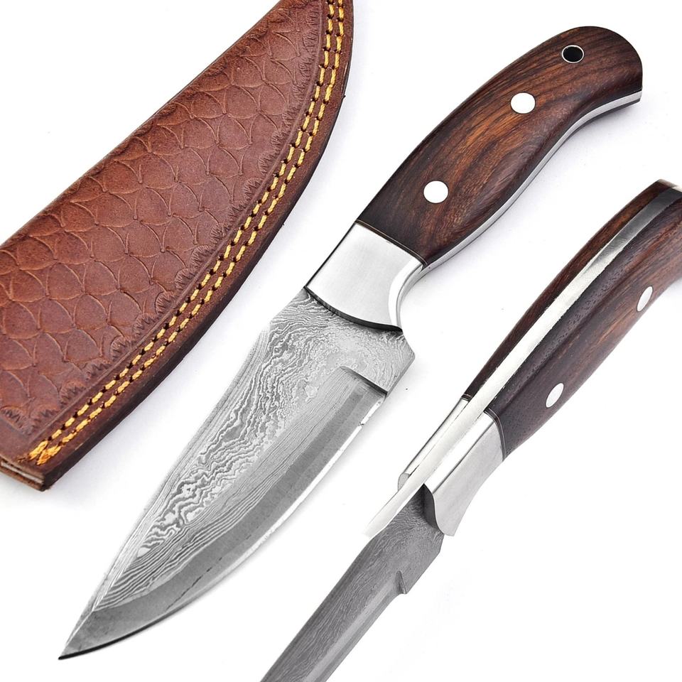 มีดสกินเนอร์เหล็กดามัสกัสแบบเต็มด้าม ด้ามไม้โรสวูด ปลายหยดน้ำ คมกริบ สำหรับงานกลางแจ้ง ทำเองได้ ระดับมืออาชีพ ใบมีดคงที่ สำหรับล่าสัตว์