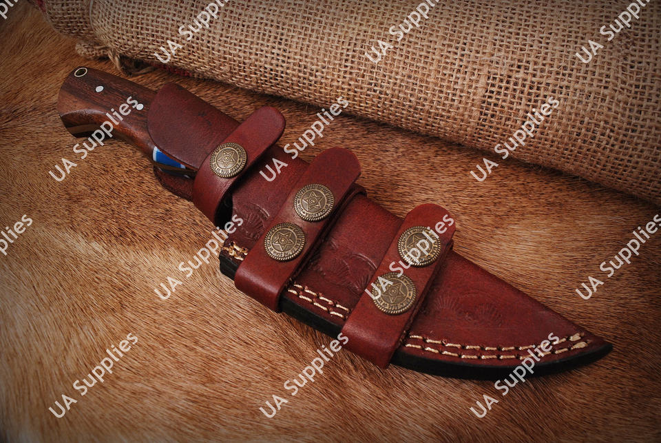 มีดสกินเนอร์เหล็กดามัสกัสแบบเต็มด้าม สำหรับกิจกรรมกลางแจ้ง บุชคราฟท์ มีดใบตายสำหรับตั้งแคมป์ ล่าสัตว์ DIY OEM ขายส่ง EDC พร้อมปลอกหนัง