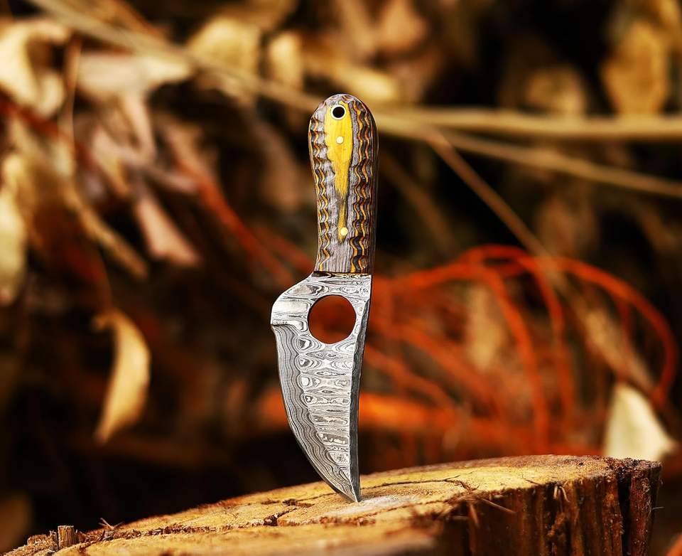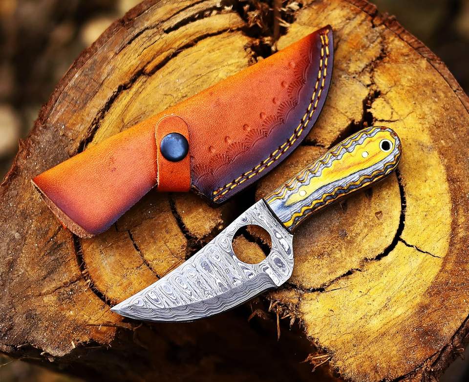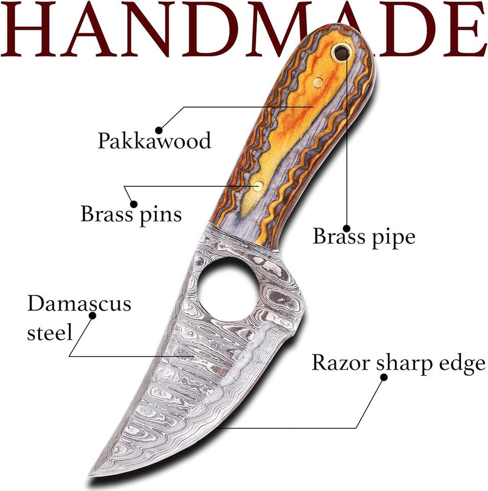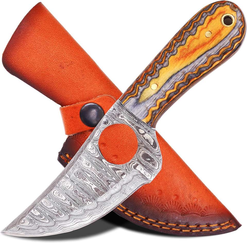 มีดเหล็กดามัสกัสสำหรับ Bushcraft และกลางแจ้งสุดขีดมีดเหล็กดามัสกัสแบบเต็มรูปแบบพร้อมเคสหนังขายดี