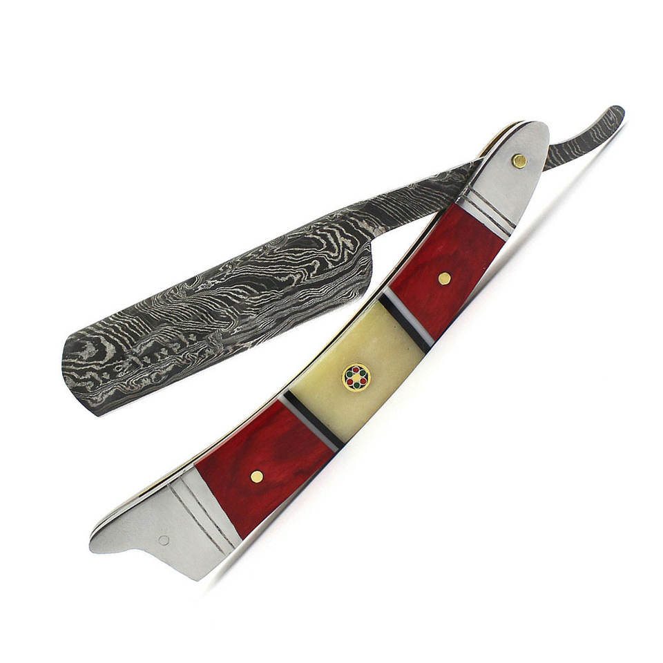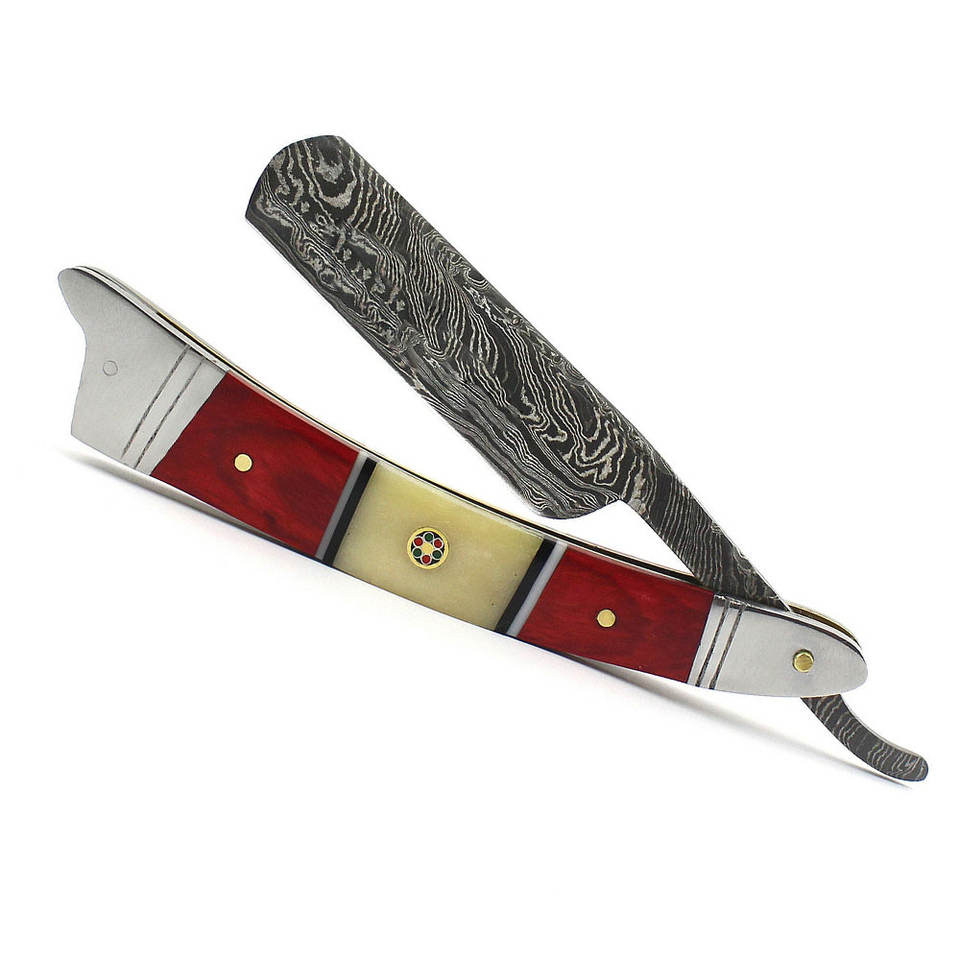 ดามัสกัสมีดโกนคอตรงโกนหนวดมีดโกนสแตนเลสใหม่ที่โกนขนพับได้ลับคมสำหรับร้านตัดผมใบหน้าแบบเปียก