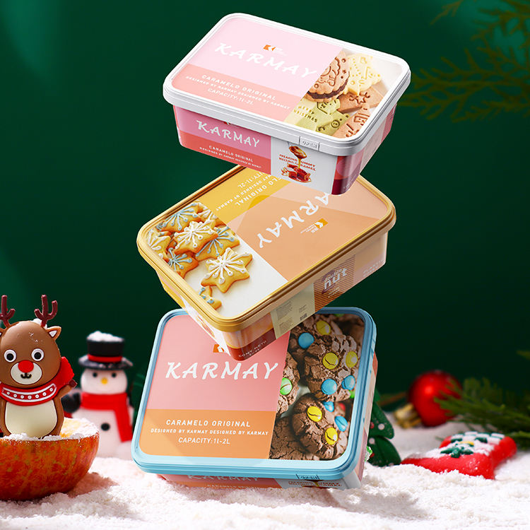 หมาดๆ600 ~ 1000กรัม3L สี่เหลี่ยมโลโก้พิมพ์พลาสติกคริสต์มาสคุกกี้บิสกิตบรรจุภัณฑ์