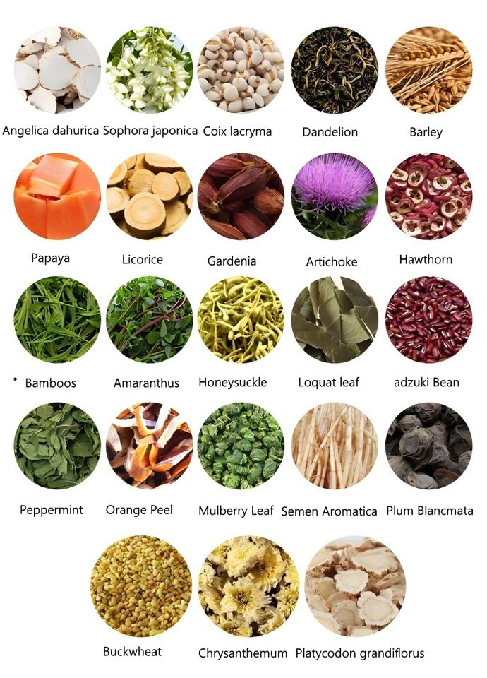 Angelica dahurica, Sophora japonica, Job's tears dandelion, etc
