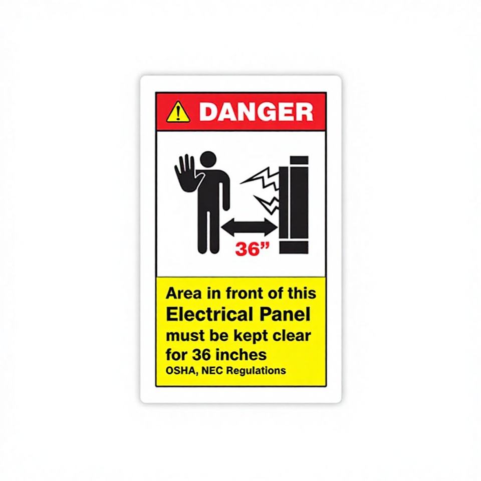 Danger Keep 36 Inches Clear Water Proof Adhesive Sticker Matte Finish in Front of Electrical Panel OSHA NEC Sign