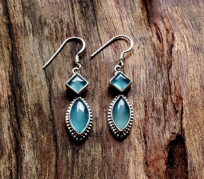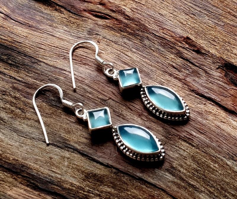 ต่างหูห้อยเงินสเตอร์ลิงพร้อมหินควาคาลซิโดนีดีไซน์แฟชั่นแบบห้อย
