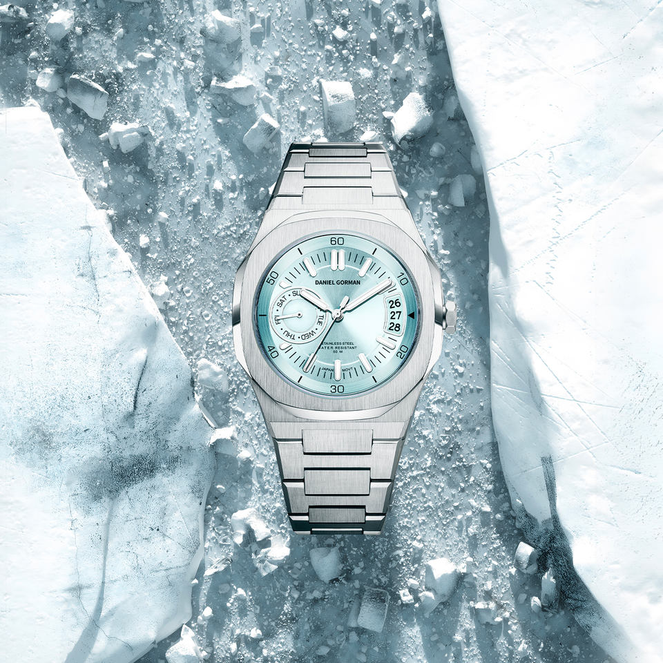 Daniel Gorman 0916แนวคิดการออกแบบยุคธารน้ำแข็งนาฬิกาควอตซ์ของผู้ชายสายเหล็กกันน้ำสำหรับนักธุรกิจที่สง่างาม