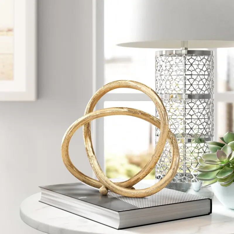 รูปปั้นโลหะห่วงทองนิรันดร์ศิลปะสมัยใหม่ประดับโต๊ะแบบแอบสแตรกต์ดีไซน์อินฟินิตี้โลหะทอง