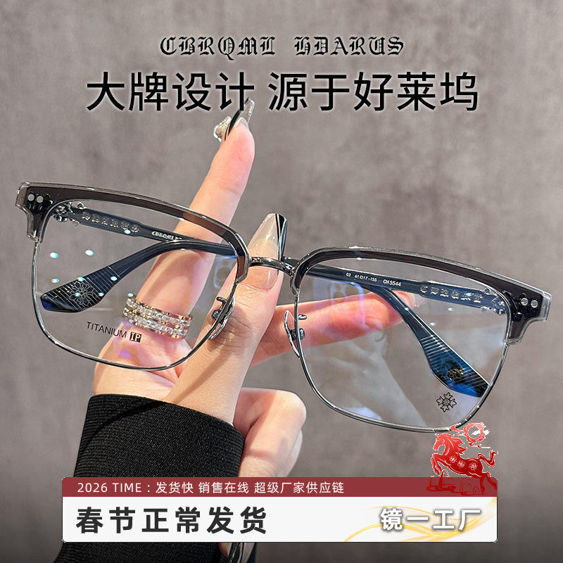 แว่นตา Danyang 5544 ทรงครึ่งกรอบสำหรับผู้ชาย ทรงสี่เหลี่ยม วัสดุไทเทเนียมแท้ เลนส์พลาสติกป้องกันรังสียูวี ดีไซน์แบบน้ำตก