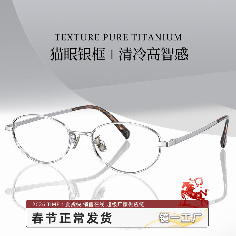 กรอบแว่นตาดันหยางแคทอาย 30920 ไทเทเนียมบริสุทธิ์น้ำหนักเบาแว่นตาผู้หญิงแบบเต็มกรอบสำหรับใบหน้าทรงกลมสี่เหลี่ยม